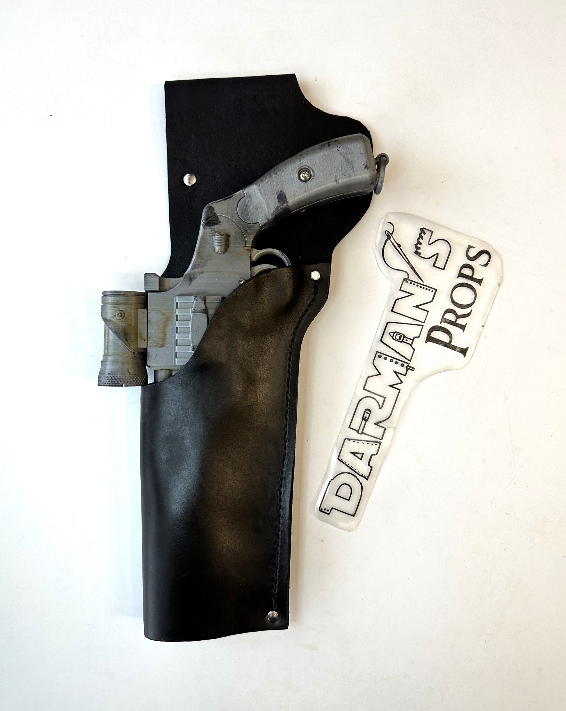 This is a real leather, Cobb Vanth Holster or holster set, made to fit an accurately scaled Blaster. Holster is designed after the style holster seen on the Mandalorian Disney Plus Show. Made to fit your blaster from TraywickDesigns or other similarly scaled prop. Holsters can be bought individually or as a set. Be sure to pair your holster with one of my belts and buckles.