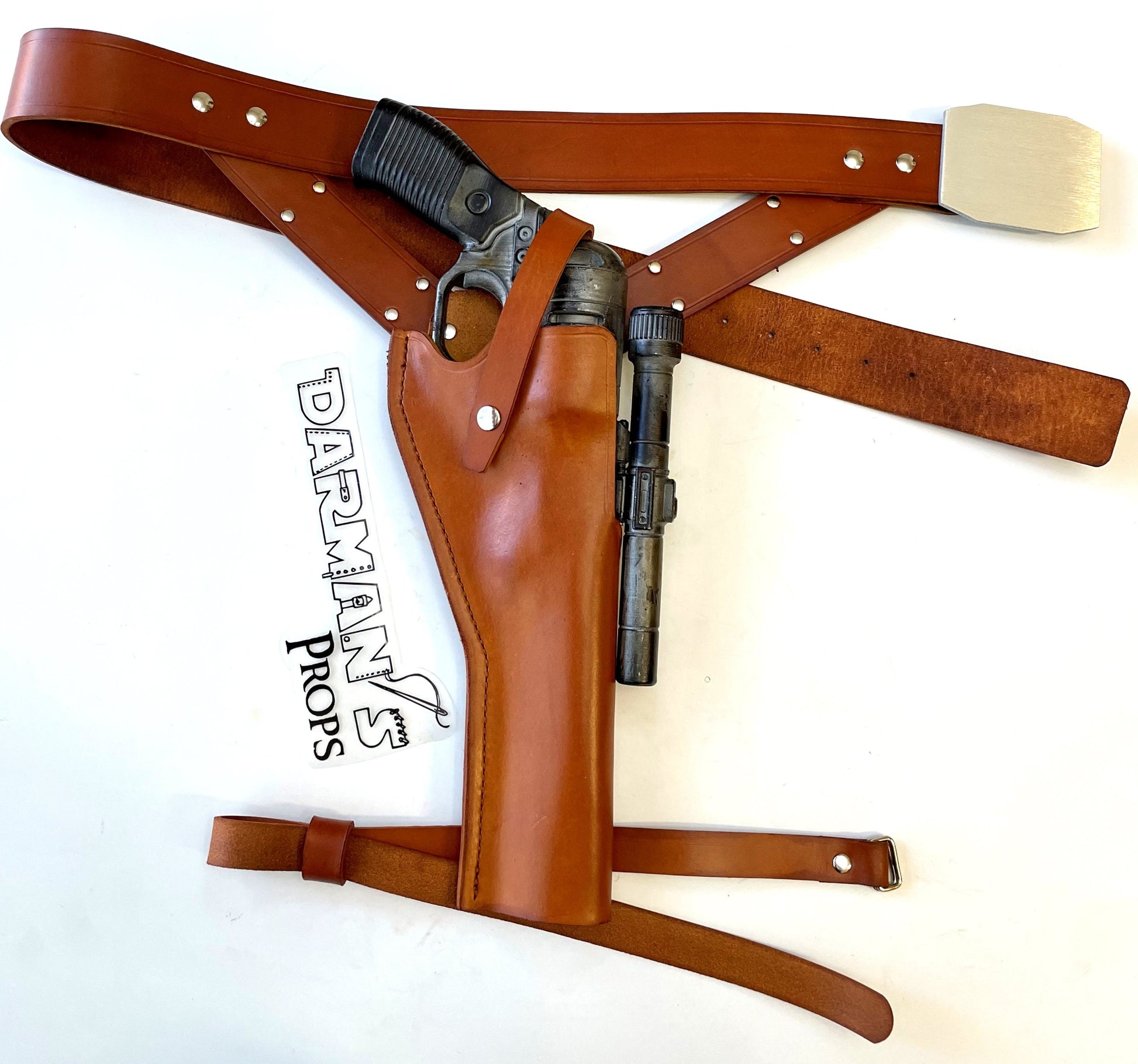 This is a real leather, DE-10 Holster/holsters and belt set, made to fit an accurately scaled Blaster.